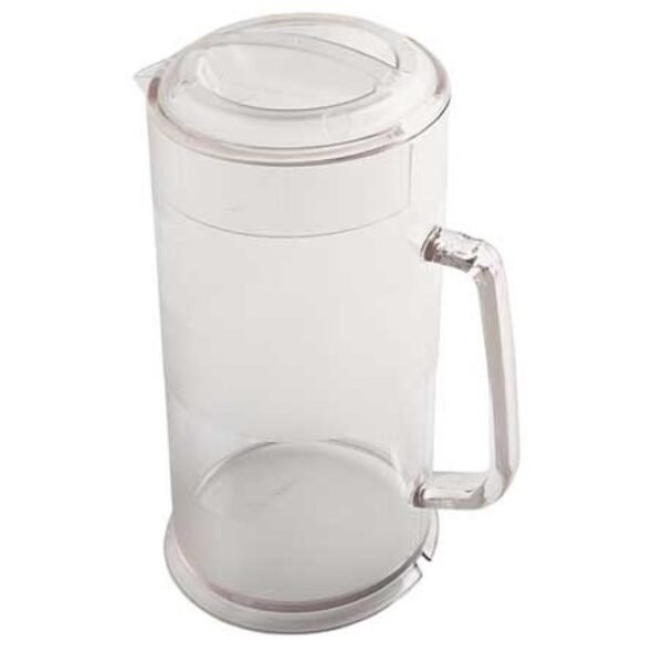 Serve without the risk of costly breakage with the Pitchers, the lightweight, ultra-durable alternative to delicate glass. Built for easy handling, the crystal-clear, classic designs provide a range of options in serving beer, tea, water, and more. Recommended for bars, restaurants, and hotels, these pitchers are impact and scratch resistant for lasting, safe service anywhere. Smaller sizes encourage self-service at casual dining and water stations, while large pitchers reduce the need for refills. A slotted base allows for complete and sanitary drying after high heat commercial dishwashing. The exclusive ice-control contoured lip and pour spout reduces spills. Pitchers offer fantastic value and protection for both customers and staff, serving your best with the best. Pitcher Covered 64 oz. Clear